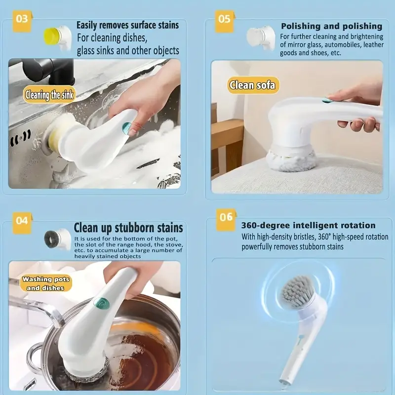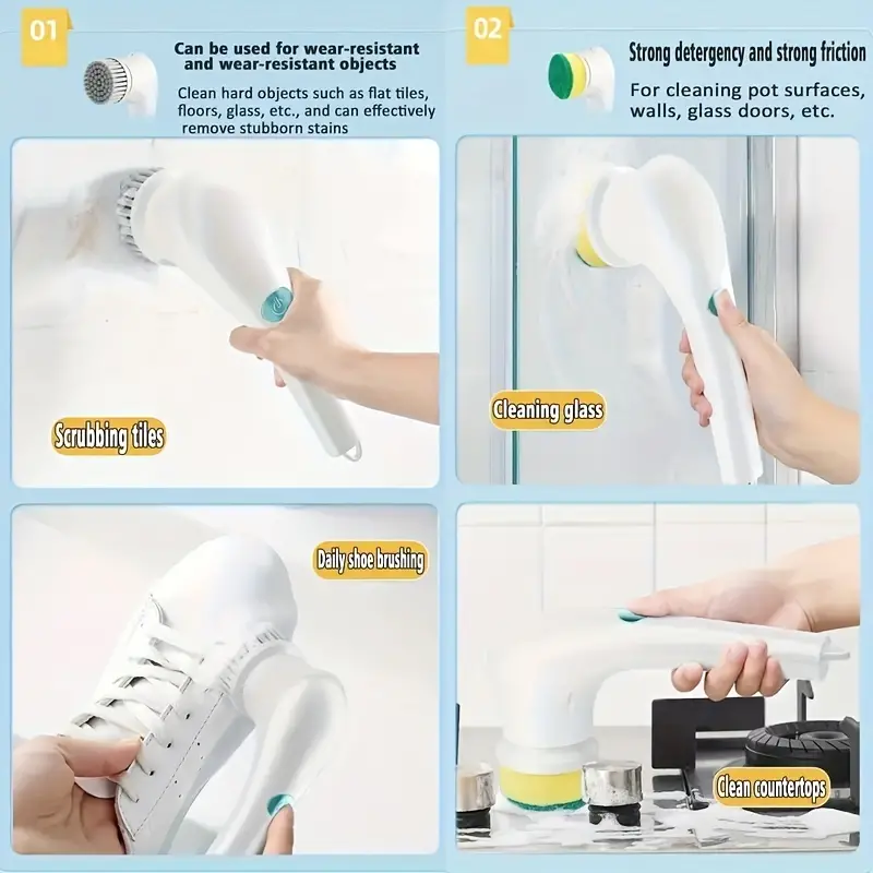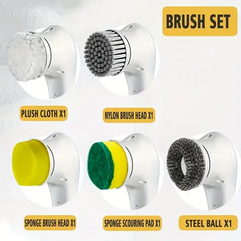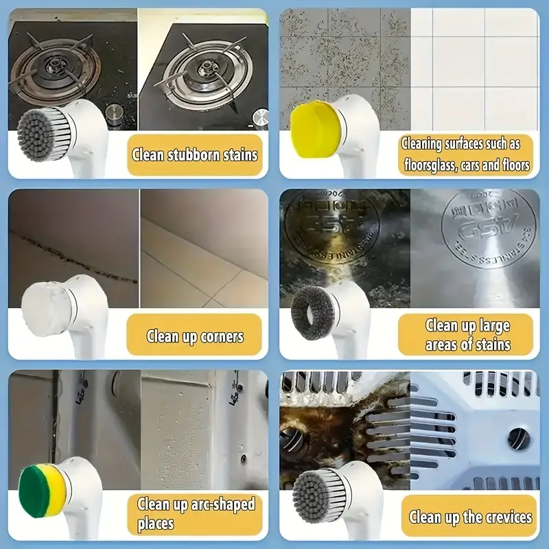 7pcs Electric Spin Scrubber, Cordless Handheld Cleaning Brush With 5 Replaceable Brush Heads, USB Rechargeable 360°Power Scrubber Mop For Wall Bathtub